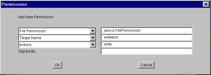 java.io.FilePermission) now displays in the text box to the right of the drop-down list.